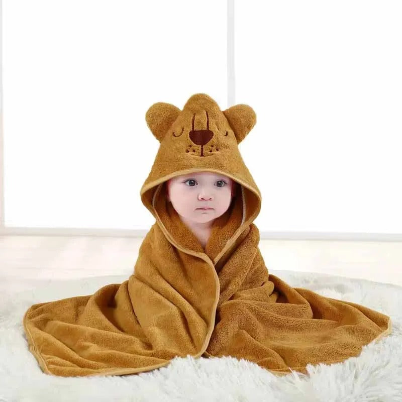 Transformez le bain en un moment magique avec cette adorable cape de bain pour bébé. Confectionnée en tissu velours corail ultra-moelleux, elle enveloppe bébé de chaleur et de douceur après chaque bain.