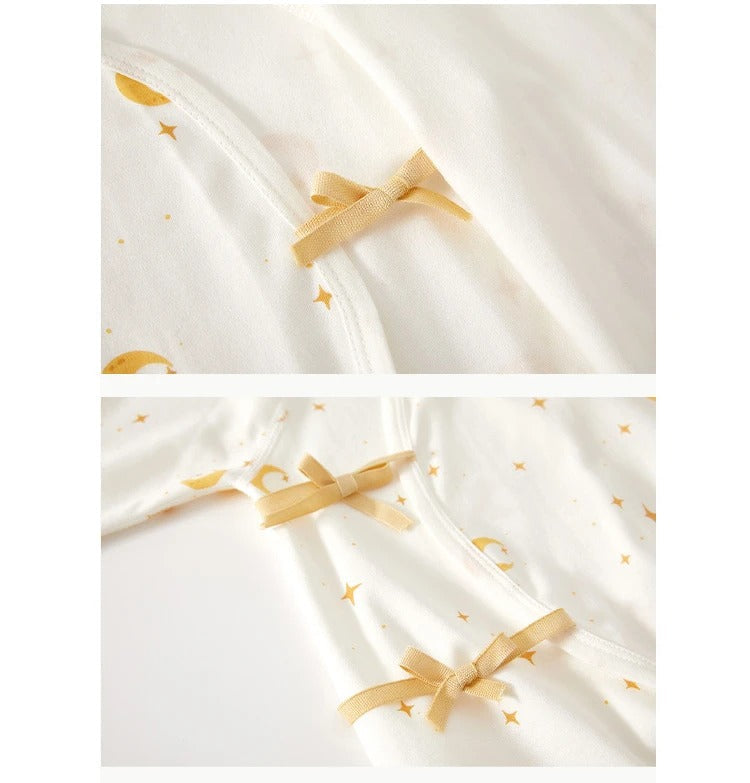 Conçue pour simplifier la vie des parents, cette grenouillère possède une ouverture croisée avec des liens, parfaite pour un habillage rapide et sans stress. Disponible en plusieurs motifs (étoiles et lunes, petites pousses ou étoiles), elle allie style et praticité. Une tenue indispensable pour le bien-être de bébé, dès ses premiers jours.